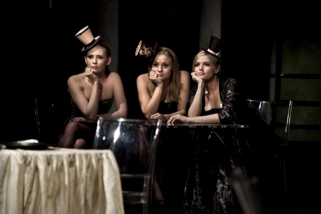 Świat przedstawiony przez Klatę, to świat, w którym warunki dyktuje pieniądz. On nigdy nie śpi. Tu, być albo nie być bohaterów, zależy od przyznania kredytu, od imponującego pałacu (trzeba go mieć, tak jak Müller, ale niekoniecznie w nim mieszkać), od kosztowności, którymi można się pochwalić przed gośćmi, co do perfekcji opanowała pani Trawińska (Katarzyna Strączek). Świat pieniądza to męski świat (co zresztą potwierdza płynąca z głośników piosenka It’s a Man’s Man’s Man’s World), w którym kobiety są tylko przyjemnym dla oka dodatkiem, dlatego Klata ubrał je w gorsety i kazał tańczyć na rurze. W tej rzeczywistości, pieniądz robi pieniądz. Bogaty biznesman (Edwin Petrykat), próbując ciąć koszty generowane przez swoich pracowników, każe im płacić za prąd, bo przecież za dużo herbaty piją. Tych reżyserskich przerysowań w Ziemi Obiecanej jest zresztą wiele, ale jakże trafnie obrazują one egoistyczne, nastawione na zysk społeczeństwo. Ale nawet w tym zepsutym społeczeństwie czasem odezwie się czyjeś gryzące sumienie. Takim wyrzutem sumienia jest tu tajemnicza biała postać Bum-Bum (Marcin Czarnik), który czasem coś skomentuje, czasem ugnie się pod ciężarem krzyża, a czasem (dosłownie) spali się ze wstydu.