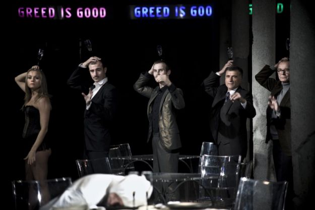 Chodzi o to, panie i panowie, że chciwość jest dobra. Chciwość przynosi rezultaty. Chciwość wyjaśnia, streszcza i wyraża esencję ducha ewolucji. Chciwość, we wszystkich swych postaciach – życia, pieniądza, miłości i wiedzy – popycha w górę rozwój ludzkości. Te słowa (po angielsku i głosem zapożyczonym od Michaela Douglasa z filmu Wall Street) wypowiada Marcin Czarnik na początku spektaklu, Ziemia Obiecana. Nad jego głową migotają cztery neony z jaskrawym napisem GREED IS GOOD. I w tym zdaniu wyraża się cała kwintesencja spektaklu wyreżyserowanego przez dyżurnego buntownika polskiego teatru, Jana Klatę.