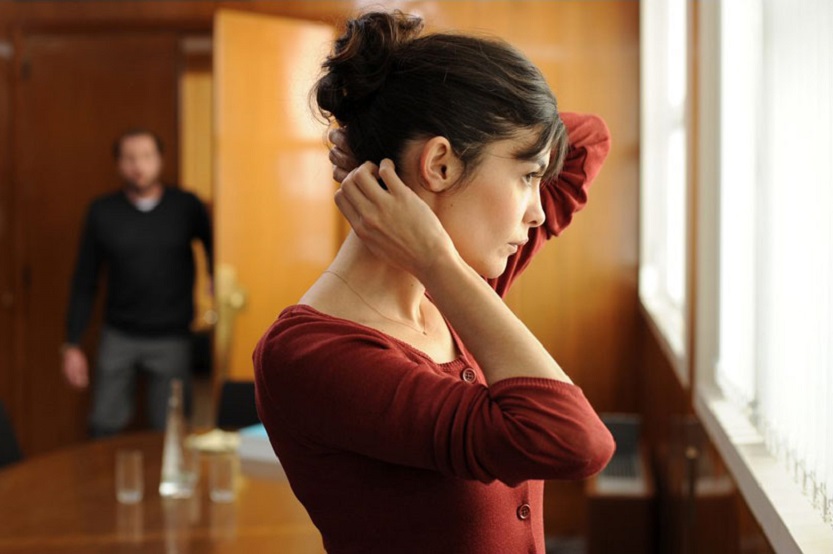 Nie, zupełnie nie przeszkadza mi sarnie albo maślane (jak kto woli) spojrzenie francuskiej aktorki. Wprost przeciwnie. Jestem zdania że, wyraża znacznie więcej niż niejedno słowo wypowiedziane z ust innych aktorek. Ale, tak to już jest w przypadku Audrey Tautou, że albo oczaruje Cię od razu i wpadasz po uszy, albo jak nie iskrzy, to od początku do samego końca. Przygotowując się do napisania tych paru zdań o filmie Delikatność, znalazłam liczne komentarze na forach, że Znowu ona! Znowu to spojrzenie Bambi! Czy nie ma już innych aktorek?! i poczułam się przez moment nieco osamotniona w moich odczuciach. Dla mnie historie, jak ta opowiedziana przez braci Foenkinos, są szyte na miarę dla Tautou. A dzięki niewymuszonej ekspresyjności aktorki, filmy w których gra nie wymagają złożonych wątków i karkołomnych dialogów.
