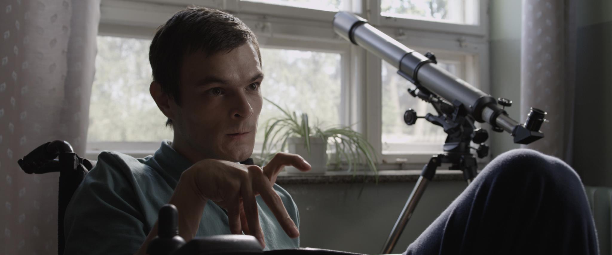 O Mateuszu zapewne wiedzielibyśmy niewiele, prawie nic, czyli tyle, co większość postaci przewijających się w filmie. Ale twórcy filmu postanowili zrobić z kalekiego chłopaka narratora. Stąd wiemy, że Mateusz lubi astronomię, podglądać sąsiadów z blokowiska i kobiece biusty, które ocenia w skali od 1-10. Wiemy też, że nie użala się nad swoim losem, tylko go akceptuje (choć na modlitwę księdza, która kończy się słowami, Bóg cię miłuje, dopowiada w myślach – ciekawe, co by było, gdyby Bóg mnie nie nienawidził?). Może jego poskręcane ciało jest do kitu, za to umysł pracuje pełną parą, czego udaje mu się w końcu dowieźć dzięki pani Joli (Anna Nehrebecka), nauczycielce z ośrodka dla umysłowo upośledzonych.