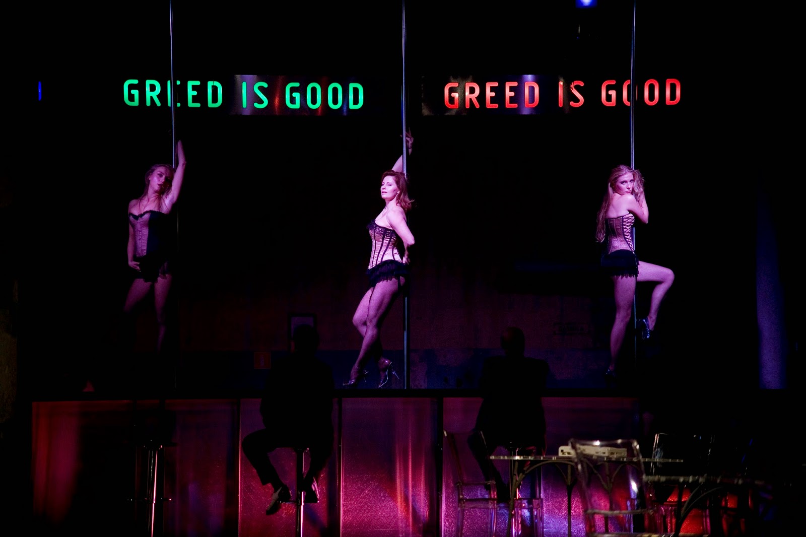 Chodzi o to, panie i panowie, że chciwość jest dobra. Chciwość przynosi rezultaty. Chciwość wyjaśnia, streszcza i wyraża esencję ducha ewolucji. Chciwość, we wszystkich swych postaciach – życia, pieniądza, miłości i wiedzy – popycha w górę rozwój ludzkości. Te słowa (po angielsku i głosem zapożyczonym od Michaela Douglasa z filmu Wall Street) wypowiada Marcin Czarnik na początku spektaklu, Ziemia Obiecana. Nad jego głową migotają cztery neony z jaskrawym napisem GREED IS GOOD. I w tym zdaniu wyraża się cała kwintesencja spektaklu wyreżyserowanego przez dyżurnego buntownika polskiego teatru,