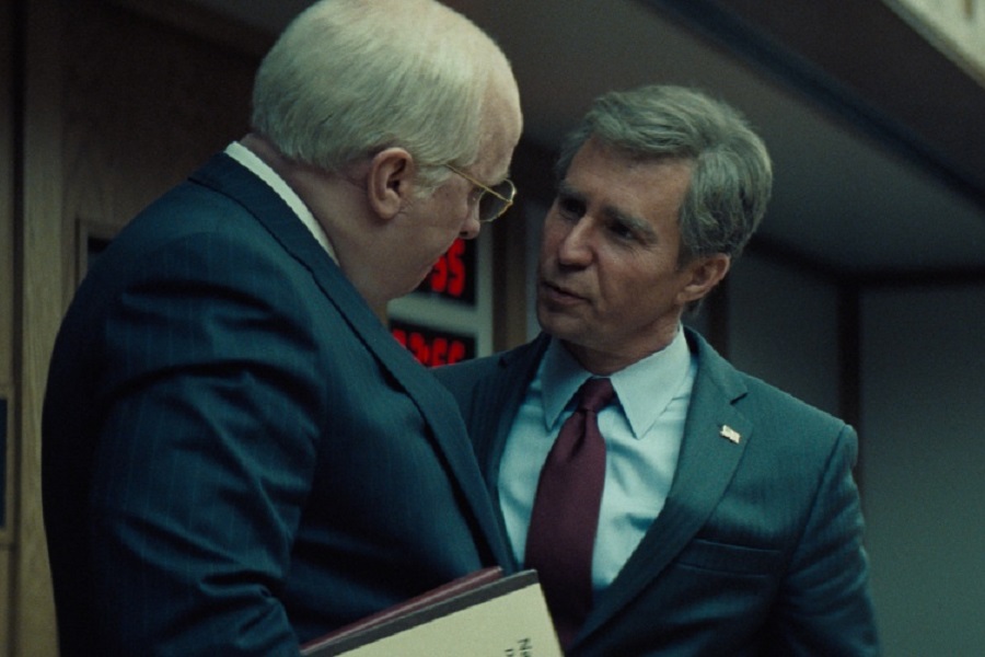 Większość filmowych biografii pokazuje wewnętrzną przemianę bohatera. Ale w scenariuszu McKaya nie ma na to miejsca. Cheney pozostaje łajdakiem od początku do końca, gdy pierze kolesia w barze w latach 60-tych i gdy po 2001 roku, korzystając z szerokich uprawnień władzy wykonawczej, pod dość wątpliwym pretekstem, rozpoczyna działania wojenne w Iraku, czy umożliwa torturowanie więźniów politycznych. Nawet jeśli czasami McKay pozwala swojemu bohaterowi okazywać miłość i troskę względem najbliższej rodziny – żony i dwóch córek, to jednak te nieliczne przebłyski dobroci za chwilę zostają przysłonięte złymi występkami, których konsekwencje sięgają znacznie dalej poza rodzinny krąg.