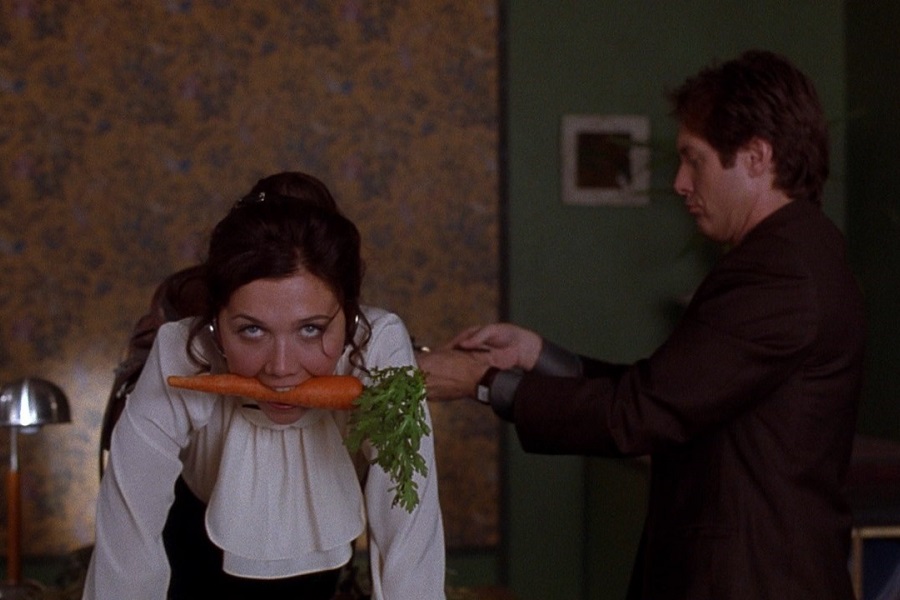 Lee Holloway (znakomita Maggie Gyllenhaal) dziewczyna, która sytuacje stresowe odreagowuje poprzez akty samookaleczania, po zwolnieniu ze szpitala psychiatrycznego próbuje ułożyć sobie życie. Zaczyna umawiać się na randki z Peterem, który podobnie jak ona, przechodził załamanie nerwowe. Ale Lee nie bardzo potrafi zaangażować się w związek. W tym czasie zatrudnia się na stanowisku sekretarki w biurze prawnym pana Greya. Między pracownicą i jej przełożonym zaczyna iskrzyć. Wkrótce okazuje się, że prawnik ma specyficzne upodobania seksualne. Dzięki szefowi udaje się Lee odkryć fascynujący obszar erotycznych podniet, prowadzących do spełnienia. Steven Shainberg – reżyser Sekretarki woli subtelność od dosłowności (to jest właśnie to, czego brakuje filmom opartym na prozie E.L. James). W filmie Shainberga nie ma ani jednej sceny miłosnej, są za to sugestywne, ale wciąż wizualnie delikatne, sceny perwersji wzbogacone znakomitą muzyką, które niosą z sobą znacznie więcej seksualnego napięcia niż zwykle prezentowanie pościelowej akrobatyki lub zabaw w czerwonym pokoju bólu Christiana Greya.