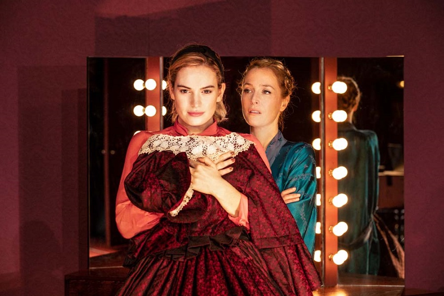 Lily James jako Eve przechodzi wiarygodną sceniczną przemianę. Najpierw jako zagorzała fanka wspaniałej Margo Channing nieśmiało wkracza w świat ukochanej gwiazdy. Zdobywa zaufanie Margo i zostaje jej asytentką. Gdy zaczyna czuć się coraz pewniej i swobodniej w świecie sławnych ludzi i wystawnych przyjęć, coraz bardziej zaczyna ingerować w życie prywatne i zawodowe aktorki. Wkrótce zostaje dublerką Margo na scenie. Trzeba przyznać, że Lily James przejmuje kontrolę z wdziękiem, młodzieńczą odwagą i energią. Monica Dolan zachwyca w roli Karen, która nie tylko nieświadomie sabotuje karierę swojej przyjaciółki Margo, ale również własne małżeństwo. Sheila Reid bawi w roli kąśliwej garderobianej.