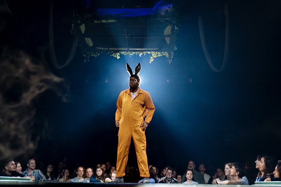 Hytner jak zwykle podchodzi do Shakespeare’a z ogromnym dystansem. Majstruje przy tekście i postaciach, stosując podobny chwyt do tego, jaki zastosowała Josie Rurke w Measure for Measure. Bohaterowie trzymają się swoich imion i płci, ale ich role ulegają zamianie. U Hytnera to królowa Titania (Gwendoline Christie) rozdaje karty w tej opowieści. Za pomocą magicznych czarów sprawia, że król elfów – Oberon (Oliver Chris) zakochuje się bez pamięci w lichym aktorzynie z oślą głową (Hammed Animashaun). Zabawa z tekstem rodzi niebezpieczne konsekwencje (głównie dla naszej przepony), gdy miłosne igraszki bohaterów przyjmują przezabawny obrót. Aż mnie korci, by powiedzieć co dzieje się na scenie, ale skoro przedstawienie ma trafić na ekrany kin, to mogłabym bezczelnie zepsuć frajdę tym, którzy nie mogli zobaczyć spektaklu na żywo.