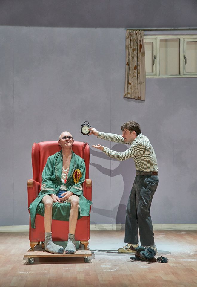 Na koniec londyńskiej wyprawy wybrałam się do Old Vic Theatre na Endgame. Rough for Theatre II. Przedstawienie Richarda Jonesa składa się z dwóch dramatów Samuela Becketta, wieczór rozpoczyna Rough for Theatre II. Trudno nazwać to historią, to jest po prostu scena, w której dwóch bliźniaczych pracowników biurowych (A i B), wyposażonych w bliźniacze biurka i lampki, rozprawia o tym, czy człowiek stojący w oknie (C.) ma wyskoczyć, czy nie. Po przerwie dziwaczności a la Beckett ciąg dalszy. W Endgame dramatopisarz zamyka swoich bohaterów w czterech pustych ścianach, bo na zewnątrz nie ma już nic. Hamm (Alan Cumming) nie widzi i nie chodzi, a jego służący Clov (Daniel Radcliffe) nie siada. W koszach na śmieci zamieszkują starcy – Nell i Nagg (Jane Horrocks i Karl Johnson). Kuśtykający Radcliffe wywołuje salwy śmiechu, gdy na każde widzimisię Hamma, śmiga po drabinie, w dół i w górę. Tymczasem Cumming uwięziony jest w fotelu ze sztucznymi chuderlawymi nóżkami (jego własne ukryte są pod siedziskiem) przypomina zawodnika bokserskiego, który w narożniku ringu przygotowuje się do monologowego nokautu w finale. Właściwie nie dziwię się, że Radcliffe, który jako dziecko był częścią mainstreamowej machiny przemysłu filmowego, od kilku lat całkowicie odcina się od tej ścieżki kariery. Zarówno w kinie, jak i w teatrze, wybiera projekty specyficzne, trudne, takie które niekoniecznie przypadną do gustu masom, podobnie może być z przedstawieniem w Old Vicu. Nie sądzę, abym za kilka lat wspominała Endgame z rozrzewnieniem, ale cieszę się, że się skusiłam.