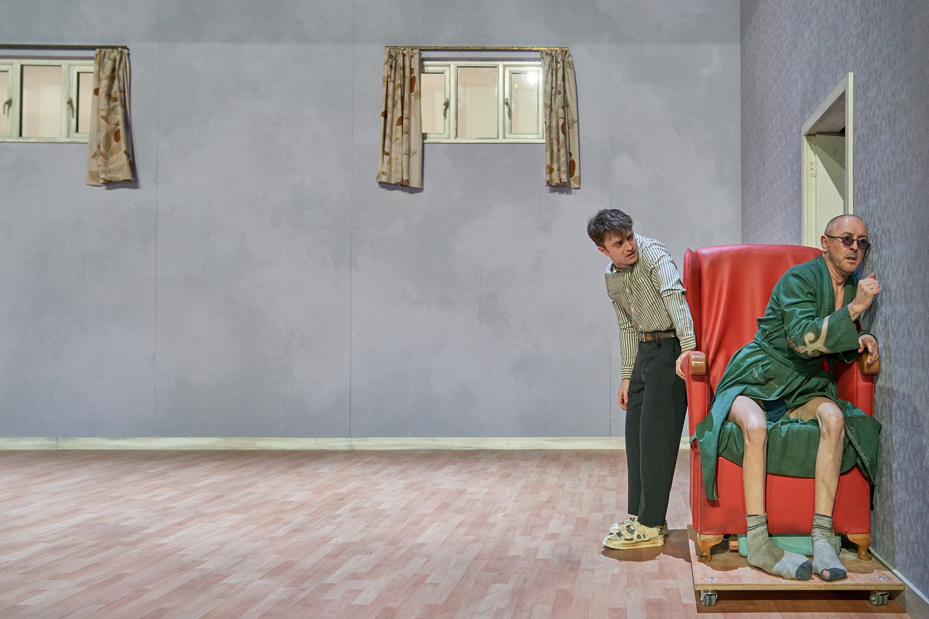 Wieczorem, dla odmiany, udałam się na bardzo krótkie przedstawienie w nastrojowym, pachnącym gorącymi magdalenkami – Bridge Theatre. Choć dramat A Number autorstwa Caryl Churchill ma zaledwie kilkadziesiąt stron, to nie czyta się go łatwo. Każdy akt to rozmowa ojca z synem. Dużo w niej niedopowiedzeń, urwanych zdań, lakonicznych odpowiedzi. Ten tekst dopiero zaczyna żyć na scenie, dzięki aktorom, takim jak Colin Morgan i Roger Allam. Nie wiem, który z nich ma trudniejsze zadanie. Allam grający ojca, który zdecydował się na sklonowanie syna i teraz mierzy się z moralnymi konsekwncjami tej decyzji, czy Morgan wcielający się w trzy całkowicie odmienne postaci syna (oryginał i jego dwie kopie). Jedno jest pewne, tworzą razem doskonały tandem, w którym starszy aktor steruje dramatyzmem, a młodszy dynamiką. Pozornie sztuka Churchill nie jest specjalnie wymagająca wizualnie, akcja dramatu nie wychodzi bowiem poza salon w mieszkaniu Saltera (ojca). Ale Lizzie Clachan odpowiadająca za scenografię, wprawiła widzów z niemałe zdumienie. Niby przez cały czas bohaterowie znajdują się w tym samym salonie ze skórzaną kanapą i ławą w centrum, ale pomieszczenie obraca się z każdym nowym aktem, prezentując widzom inny zakątek mieszkania. Wykorzystała do tego króciutkie, zaciemnione przerwy między 5 aktami sztuki, którą służą Morganowi do ekspresowej zmiany garderoby, uczesania (również akcentów i mowy ciała) pomiędzy kolejnymi wcielaniami… O A Number, możnaby powiedzieć: mała rzecz, a cieszy. 60-minutowe przedstawienie, dwóch aktorów, skromna oprawa wizualna, a tyle emocji i twórczej kreatywności.