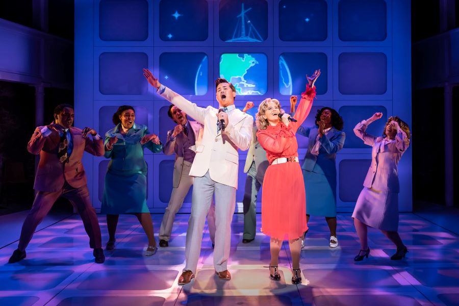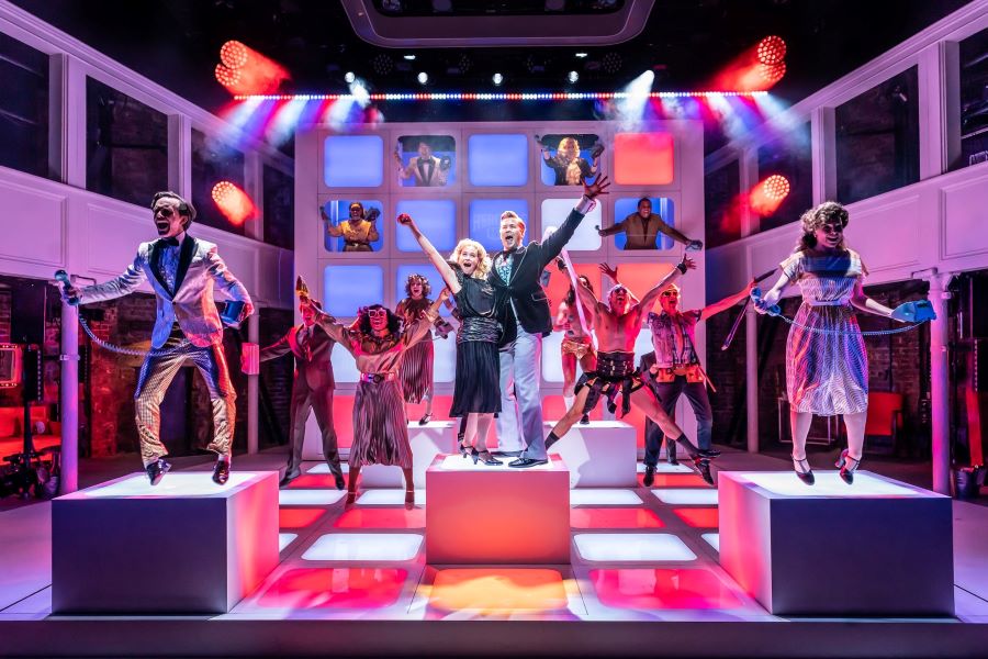 Jeśli widzieliście niedawny film z Jessicą Chastain, to wiecie, że opowieść o uroczej ewanglistce z Minnesoty, która w latach 70 i 80-tych codziennie gromadziła przed ekranami telewizorów rzesze wiernych, to całkiem wdzięczny materiał do artystycznej przeróbki. Przy czym, Oczy Tammy Faye to typowa filmowa biografia, która odhacza wszystkie niezbędne wątki: od dzieciństwa, trudnych relacji z rozdzicami, poprzez sukcesy, aż po skandale. Twórcy londyńskiego show podeszli do tematu zupełnie inaczej. Już pierwsza scena (w gabinecie proktologa) sugeruje, że to będzie opowieść nie całkiem na poważnie, przy czym twórcy raczej z pobłażeniem odnoszą sie do tych, którym Tammy wchodzi w paradę (przedstawiciele kościoła, zazdrośni o popularność ewangelicy). Dla twórców musicalu, Tammy jest fascynującą, silną kobietą, która przypomniała ludziom, że wiara może być fajna, a każdy człowiek zasługuje na szacunek (kluczowym momentem spektaklu jest scena, w której bohaterka przytula chorego na AIDS pastora-geja). Nie obędzie się też bez odniesień do sytuacji polityczno-społecznej, skoro w kreatywnym zespole mamy mistrza tego tematu. Ale nie bójcie się, James Graham nawet nudną politykę potrafi uczynić ekscytującą. W opowieści mamy też polski wątek w postaci Jana Pawła II (mówiący z twardym akcentem, Nicholas Rowe), którego niepokoi rosnąca popularność tele-ewangelistów zza oceanu, upatruje w nich zagrożenia dla wiary chrześcijańskiej.