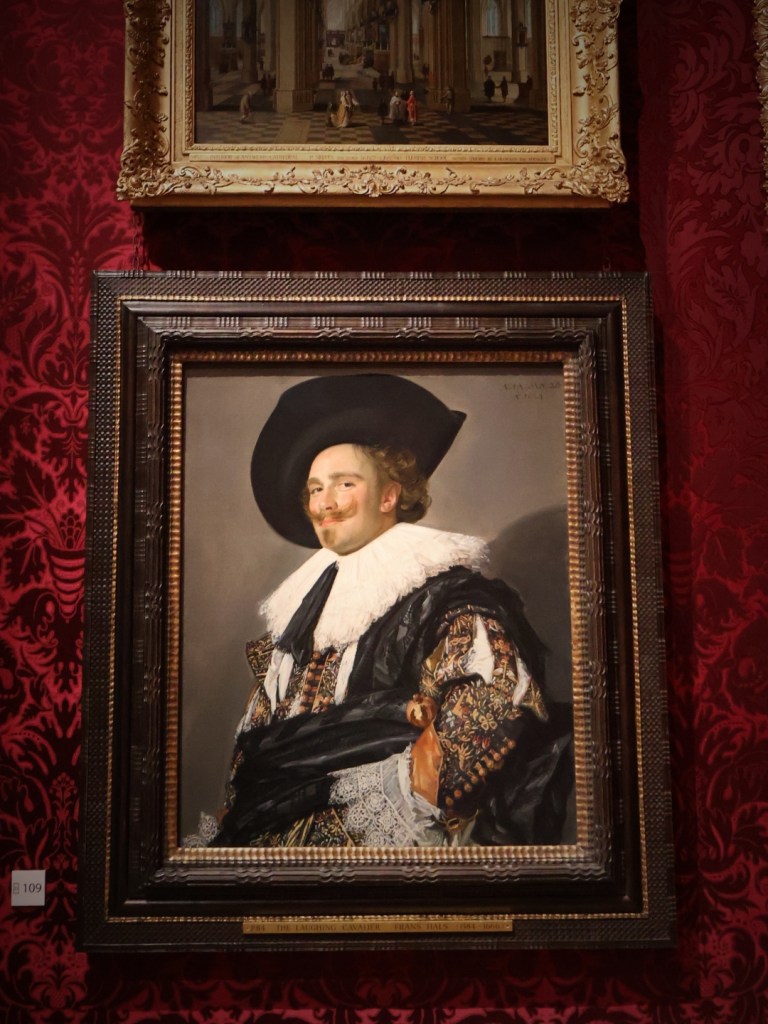 Śmiejący się kawaler. Mężczyzna wcale nie jest kawalerem, a jego śmiech to złudzenie optyczne wywołane fantazyjnie podkręconymi wąsami. Obraz zyskał status ikony po wojnie licytacyjnej z udziałem markiza Hertforda, trafiając na pierwsze strony gazet. Prasa i publiczność nadały mu chwytliwy tytuł (wcześniej wystawiano go jako Portret kawalera), czyniąc kawalera jedną z najbardziej rozpoznawalnych postaci w historii malarstwa.